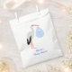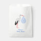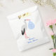 Este maravilhoso pacote de bolsas favoritas apresenta uma imagem gráfica de uma bela Tempestade branca com penas de cauda pretas segurando-se num pacote azul pálido de cobertores. Há um texto azul no pacote que diz "Menino". Esta design é perfeita para celebrar um chá de fraldas.