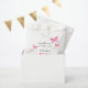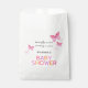 Chá de fraldas personalizado bonito, bolsa de favor decorada com borboletas rosa e texto colorido. Esta design é perfeita para um evento honrando uma menina.