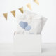 Chá de fraldas simples e bonito favorece bolsas decoradas com uma elegante ilustração de balão azul. Saco de presente perfeito para incluir no seu filho ou favores de chá de fraldas. Ilustrada e projetada por Patricia Alvarez.