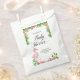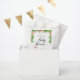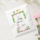 Bonita bolsa de chá de fraldas perfeita para um obrigado que você dá. O design oferece um gráfico de folhagem tropical acentuado com um flamingo rosa. Personalize com o nome da futura mãe e com um obrigado curto.