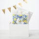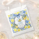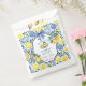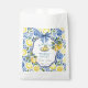 Um design elegante de Chá de Noiva com fundo de azulejo azul e limões.