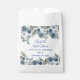 Sacolas de favores de chá de noiva com flores em aquarela azul e branco.