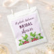 Chá de noiva com tema de jardim com dahlias brancas, framboesas e raminhos de hortelã com tipografia cursiva roxa