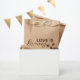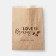 Adicione um toque encantador e pessoal ao seu chá de noiva com esta Bolsa de Favor "O Amor Está Fermentando". Com um design rústico, esta bolsa apresenta um gráfico caprichoso de grãos de café e a frase sincera “O Amor Está Fermentando” no topo. Perfeita para guardar pequenas guloseimas como chá, café ou doces, é totalmente personalizável com o nome da noiva e a data do evento para tornar seu chá ainda mais memorável.