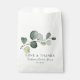As bolsas elegantes para o chá de panela apresentam folhas de eucalipto com um espalhador de ouro. "amar & obrigados" em fonte clássica com script para nome.