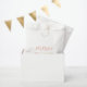 Preencha essas bolsas bonitinhas com doces e obrigado seus convidados chás de panela no estilo chic parisiense. A design apresenta "Merci" em caracteres de estilo manuscritos cor-de-rosa pêssego e uma linha de quatro macarões franceses desprezíveis em tons pastéis de rosa, marfim, amarelo e bronzeado. Personalize com a noiva o nome e a data do chá na fonte de cinza.