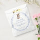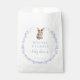 Adorável bebê chá favorece bolsas doces com um belo e charmoso coelho azul com o arco e a coroa azul-clara de flor silvestre.