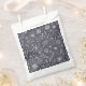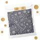 Desenhos de flores botânicas deliciosos, em branco, sobre fundo de painéis de cinza escuro. Uma ótima coordenação de bolsas para combinar com a sua celebração.