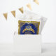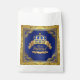 Saco de presente de chuva de bebê príncipe com bela coroa azul royal e dourada e faixas douradas elegantes em um lindo fundo azul royal e dourado. Você pode excluir as palavras É um Príncipe para adicionar o texto de sua escolha conforme necessário para o seu evento.