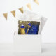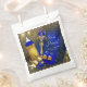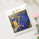 Sacos de lembrancinhas para chá de bebê do príncipe com lindos elementos azuis reais e dourados em um belo fundo azul real e dourado. Você pode personalizar esses sacos de lembrancinhas adicionando simplesmente seu texto.