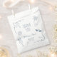 Essas bolsas de favor de chá de panela de noiva com desenhos à mão de praia apresentam um fundo branco limpo decorado com doodles em azul empoeirado à beira-mar - ondas, conchas, estrelas-do-mar, palmeiras, óculos de sol e desenhos ondulados fofos. No centro da bolsa há um texto personalizável que diz "Obrigado", com um espaço para o nome da noiva e a data do evento abaixo. Todo o design é editável, permitindo que você combine as cores e o texto com o seu chá de panela de noiva perfeitamente, ao mesmo tempo em que oferece aos convidados uma apresentação elegante e praiana.