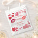 Sacolinha elegante e sofisticada para Chuveiro de Noiva ou Festa de Despedida de Solteira com a frase "BEIJE A NOIVA DESPEDIDA". Noiva em letras cursivas nos lábios vermelhos.