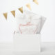 A Coleção Bella apresenta laços de fita rosa água-marinha coquete e uma fonte de letra de caligrafia elegante. Esta coleção é delicada e feminina, perfeita para o seu evento temático 'casando'.