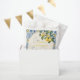 Celebrate a beautiful baby shower with this elegant Mediterranean-inspired favor bag. Featuring classic blue and white tile patterns, hand-painted style lemons, and soft Italian Amalfi Coast charm, this custom baby shower treat bag is perfect for holding sweets, favors, or small gifts for guests.