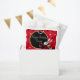 Saudação de aniversário festiva ilustração de vintage do Coelho Branco na garba de Rainha do Coração, de cor vermelha, com círculo de texto personalizável preto e dourado e fundo de diamante vermelho / dourado / preto