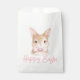 Torne sua celebração de Páscoa ainda mais doce com essas adoráveis sacolas de lembrancinhas que apresentam um charmoso coelho em aquarela usando um laço rosa claro e “Feliz Páscoa” em escrita delicada. Os tons pastéis suaves e o fundo branco minimalista criam um visual limpo e elegante, perfeito para as festividades da primavera.