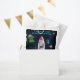 3-2-1... Exploda! Chamando todos os astronautas para celebrar e viagem pelo espaço. Surpreenda com esta fabulosa ilustração espacial. Crie uma segunda colagem de fotos de aniversário em um grande número dois. Substitua as imagens de exemplo por suas próprias imagens. Esse design apresenta um cenário de espaço noturno com planetas, estrelas e constelações. Voe com um foguete espacial próximo a um disco voador com uma alienígena verde e um astronauta. Presente de segundo aniversário excelente. Colagem de fotos número 2 personalizada para um produto exclusivo e muito especial.