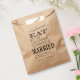 Bolsas bonitas para guloseimas da noiva e do noivo com seus nomes e data de casamento e as palavras "Coma Bebida e Seja Casado."