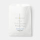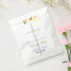 Filho Primeira Comunhão Obrigado Papel Favorece Bolsas com cruz prateada pintada manualmente com sotaques Dourados. Personalize o nome no script azul e a data no texto preto no fundo branco. Trabalho de arte gráfico original e Design © TamiraZDesign.