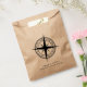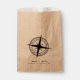 Um saco de papel com uma bússola ilustrada com seus nomes e uma mensagem curta abaixo. Ao redor das bordas, você pode preencher quatro datas significativas para você e seu parceiro. Você poderia escolher seus aniversários, seu casamento ou noivado, a data que você conheceu, a data em que você se tornou um casal ou as datas de nascimento de seus filhos. Como alternativa, você pode usar esses pequenos espaços para escrever uma pequena citação de quatro palavras como "o amor está por toda parte" ou quatro palavras aleatórias como "viagem" ou "o amor". A ideia é que você usa esta bolsa para fazer favores de casamento para seus hóspedes ou para permitir que os hóspedes encham a bolsa com pipoca, itens de um buffet de doces ou biscoitos. Isso seria excelente para qualquer um que tivesse um casamento temático de viagem ou aventura ou qualquer um dos favores do casamento do fazer DIY.