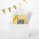 Personalize esta adorável bolsa de favores do primeiro aniversario Girafa com sua foto pequena. Veja nossos produtos correspondentes para a festa.