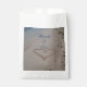 Casamento romântico favorece bolsas de presentes com um bonito coração desenhado na areia de uma praia tropical. Personalize com os nomes do casal. Mostrado aqui num saco branco. Outras opções de cor estão disponíveis.