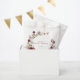 Sacolas de lembrancinhas florais de outono elegantes com uma impressionante coroa floral em aquarela, com flores delicadas e suaves em cores de outono, como vermelho tijolo, burgundy e vinho e lindas borboletas.
