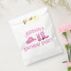 O favorito bolsas apresenta texto personalizado junto com um chapéu cor-de-rosa e inicializações.