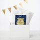 O fundo mármore azul representa estabilidade e força. crachá Dourado personalizado com o nome e a cidade do oficial aposentado ou graduado. Convide convidados de estilo com esta bela decoração masculina de festas e decoração.