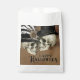 Um design único assombroso para sua festa de Halloween, ou para entregar seu doce Trick ou Treat, este design tem um tema de terror gótico vitoriano com crânios masculinos e femininos vestidos de chapéu fino com um fundo ouro marrom marmoreado. O emparelhamento da face de digitação da Vintage adiciona estilo autêntico ao design de assombração. Uma coleção de itens correspondentes está disponível para a sua festa de Halloween ou evento especial.