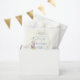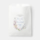Delicar flores silvestres decoram uma crista monograma para um casamento elegante de boho. Nomes do casal dentro da crista. Seu doce ditado acima da crista, ou use o sugerido. A caligrafia moderna é graciosa e elegante, aliada a uma fonte tradicional de bonés de serifa. Personalize sua mensagem e, se desejar, personalize as fontes e a cor. O texto é azul francês.