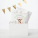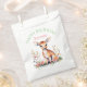 Bolsas personalizadas de aniversário. Um doce veado bebê rodeado por flores cor-de-água, festa de aniversário de ilustração.
