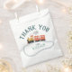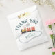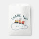 Este obrigado de aniversário de criança com tema de transporte, fofo e moderno, que você prefere, apresenta uma ilustração de viagem de trem azul, com trilhas, sobre um fundo branco moderno. As bolsas podem ser personalizadas com o nome dos seus rapazes. A viagem perfeita adição à festa de aniversário do seu filho ou criança!