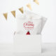Uma bela ilustração do animal de Natal: Curioso cão vestindo um chapéu de Papai Noel. Cartões de natal sazonal escrito em letras tipográficas modernas.