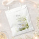 Saco de presente de design de casamento adorável e editável com um belo buquê de flor de primavera com pequenas margaridas e flores verdes no fundo. Bolsas personalizáveis, Copas de Papel, Chapas, Winelabels, Convites de Casamento, Salvar Convites de Data, Direções, Alojamento e Cartões de Informação. Todas as coisas que você precisa para o seu dia mais bonito da vida. Este é o melhor e o Design Número 1 para o seu dia especial. Design personalizável para casamentos românticos. Criado com o amor pela UtART