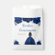 This Quinceanera favor bag features faux glitter navy blue floral flowers and a beautiful princess with dark skin and an elegant dress. This is perfect for a Quinceanera birthday party.