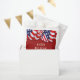 Este design apresenta um revestimento vermelho, branco e azul na parte superior e estrelas na parte inferior. Personalize o texto, remova-o ou clique em personalizar para selecionar um estilo de fonte, tamanho e cor preferidos. Excelente para feriados patrióticos ou todo o verão.