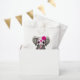 Este adorável ilustra um pequeno elefante bebê condecorado com o Dia dos padrões do Crânio do Açúcar Morto. Um rosa solteiro aparece na cabeça dos elefantes com uma estrela de cinco pontos no meio da testa. O minúsculo animal é decorado com espirais e padrões de pontos na tradição do Dia dos Pelos Mortos de Açúcar. Este design único elefante é uma forma adorável de celebrar o Dia dos Mortos.