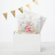 segundo ou qualquer aniversário favorece bolsas com dinossauros coloridos cercados por sotaques florais brancos e balões em cores rosa e pastel. Personalize facilmente todo o texto. - Kate Eden Art