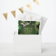 A ilustração original de desenho animado de diferentes tipos de dinossauros adoráveis junto com alguma folhagem de plantas da selva verde. Os dinossauros incluídos são Tyrannosaurus / T-rex, Tricerátops, Pteranodon e Brachiosaurus. A cor de fundo é verde. Há também três áreas de texto personalizáveis.