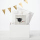 Dons personalizados e favoritos para festas com placa de boné de formatura e fita em preto, com um diploma enrolado com fita vermelha e um fundo de canvas. Personalize-o com seu nome, escola ou outro texto.