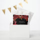 Para uma doce 16, 16ª festa de aniversário. Um fundo preto com brilho vermelho, brilho, brilho, vestido vermelho e rosas vermelhas, florais. O nome é escrito com um moderno estilo escrito à mão. Personalize e adicione seu nome e uma data.
