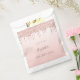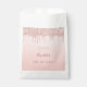 Um saco de favores para uma menina e glamourosa 16ª festa de aniversário. Um mbre rosa dourado falso, fundo gradiente com gotas de rosa dourado, aparência de pingar. O texto: Tempate por um nome escrito em ouro rosa escuro com um grande estilo escrito à mão moderno. Modelos para uma data e 16 anos.