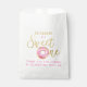 Agradeça aos convidados da maneira mais doce com esta bolsa de favor temática de donut “Sweet One”! Com fontes rosa e dourado, um donut com glacê de aquarela e confeitos divertidos, é a adição perfeita para uma loja de donuts, confeitos ou uma festa de primeiro aniversário inspirada em padaria. Personalize com o nome da criança para uma despedida memorável da festa.