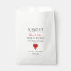 Este é doce Obrigado pelo Bar de Casamento Buffet Bag. Este saco com fundo vermelho. Você pode clicar no botão personalizar para personalizar o design escolhendo a cor de fundo que você deseja e até mesmo adicionar seu próprio texto. Personalize essas bolsas com nomes de casais e data de casamento. Estas bolsas favoritas são excelentes para um bufê de bar doce de casamento. Ou para bolsas de pipoca. O design está acabado com um simples coração vermelho de bolha.