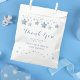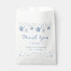 Mande seus convidados com um brilho com essas bolsas adoráveis! Eles apresentam uma charmosa corda d'água com estrelas azuis penduradas no topo, dando um toque caprichoso e grato. Abaixo, um belo roteiro de "Obrigado" expressa seu apreço pela presença deles. Imaginamos essas bolsas como a forma perfeita de empacotar pequenos doces ou fichas de gratidão, um doce lembrete de um dia especial celebrando uma nova chegada. É como enviar um pedacinho da comemoração estrelada para casa com cada convidado.