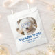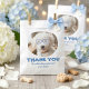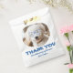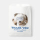 This charming favor bag features a customizable photo of your pet—like the sweet curly-haired pup shown here—wearing whimsical blue heart-shaped glasses. Underneath, a playful message reads, "THANK YOU for celebrating my humans!" It’s a witty and heartwarming way to add a personal touch to your treats, candy, or small gifts. Versatile Use: Ideal for wedding favors, "doggy bags" for pet-themed decor, or treats at a bridal shower.