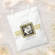 O design apresenta um par de skates de gelo sobre uma crista de floco de neve com falso brilho dourado, preto e fundo branco. Este elegante design desportivo de inverno serve como bolsas modernas e únicas a favor com texto personalizado para a festa de patinação no gelo, Natal e muito mais!