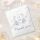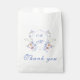 A refined and romantic wedding design featuring a dusty blue monogram crest framed by watercolor florals in pastel lavender, blush, and peach tones. The layout includes soft greenery, elegant serif and script typography, and a timeless format perfect for formal weddings.