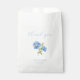 Saco de favores florais de hydrangea Chic e na moda com script de escova 'Obrigado' em azul empoeirado, nomes de casais e data. Personalize para fazer isso você tem um presente especial.